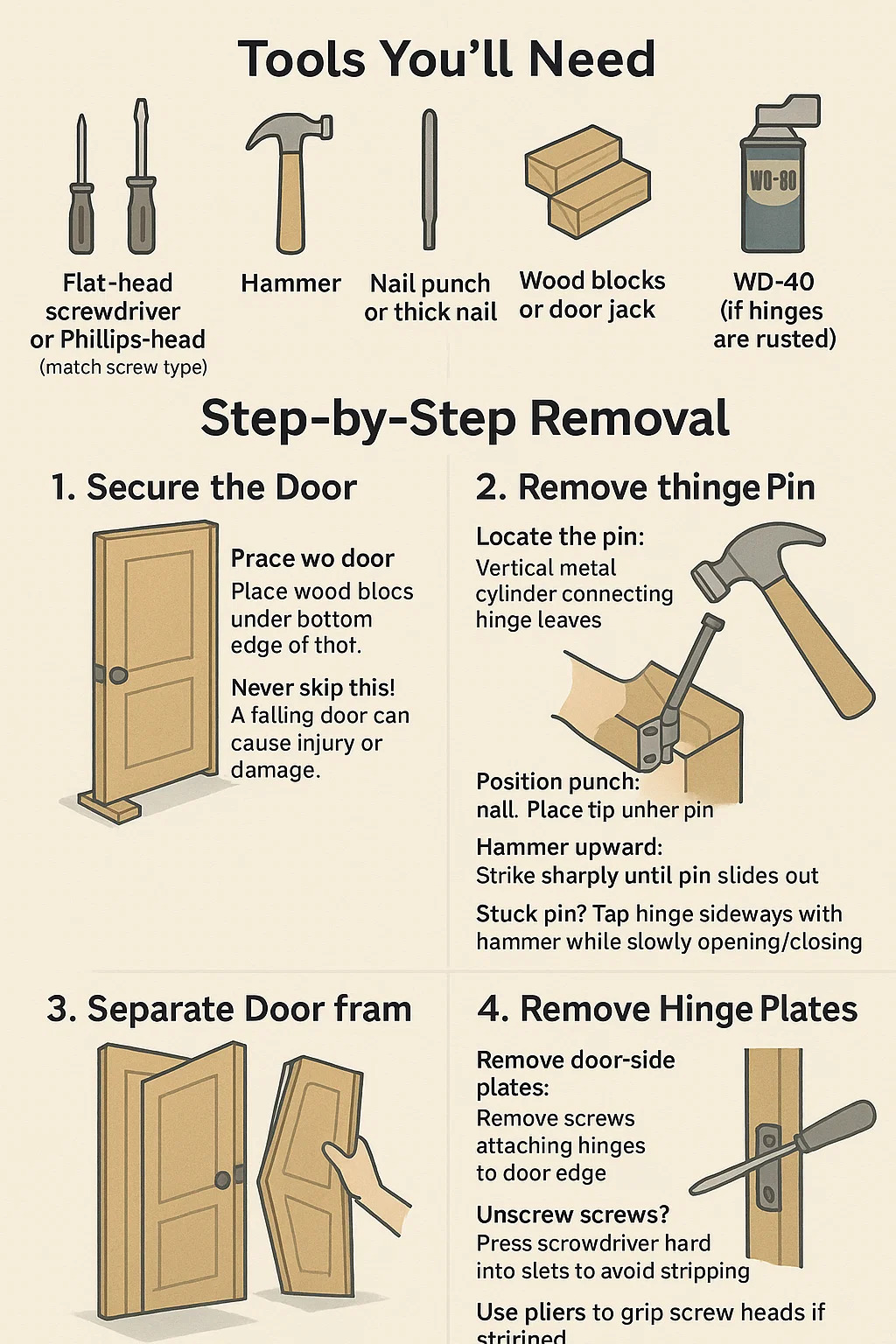 Tháo ốc vít cố định bản lề vào khung cửa.
